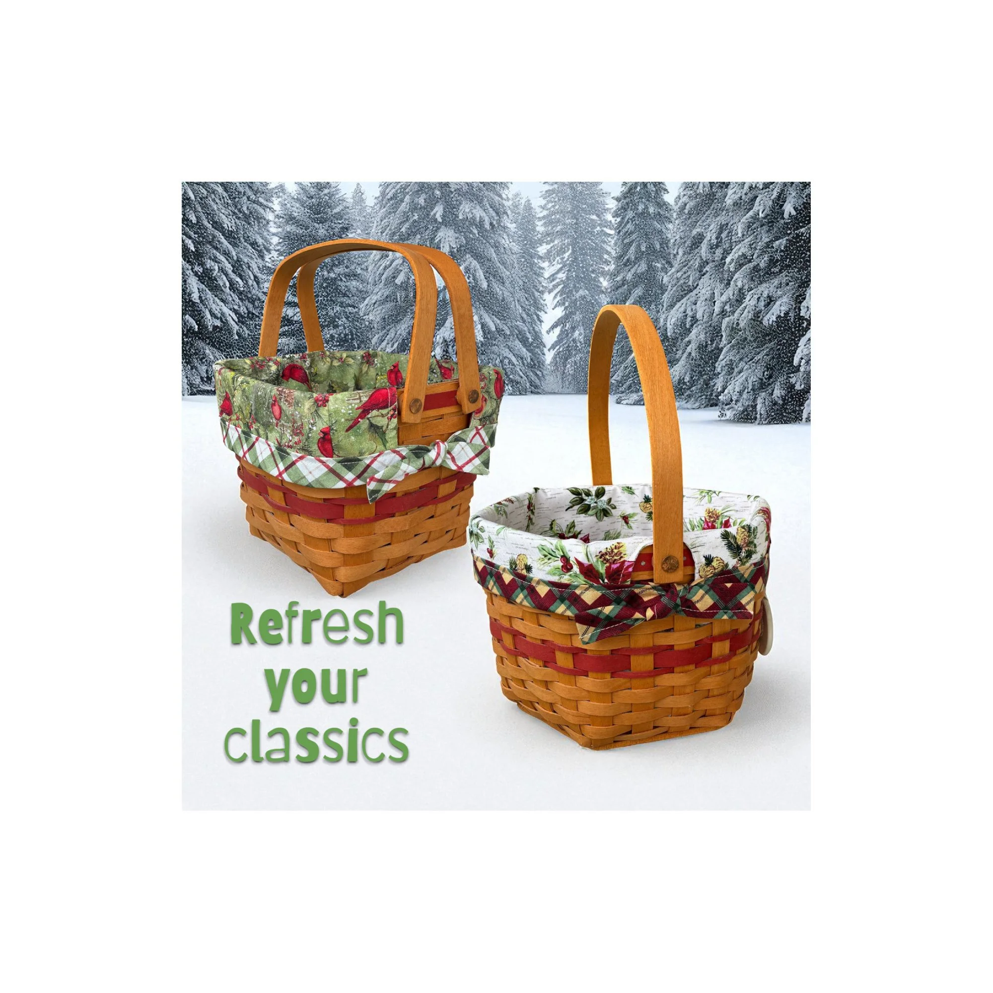 Click on the basket to see our liner style and variety of fabrics.